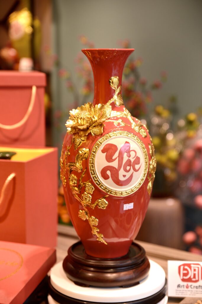 Bảo bình hút lộc đắp nổi dát vàng chữ PHÚC – LỘC Mẫu mới Bát Tràng tết 2023 cao 42cm